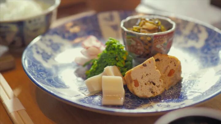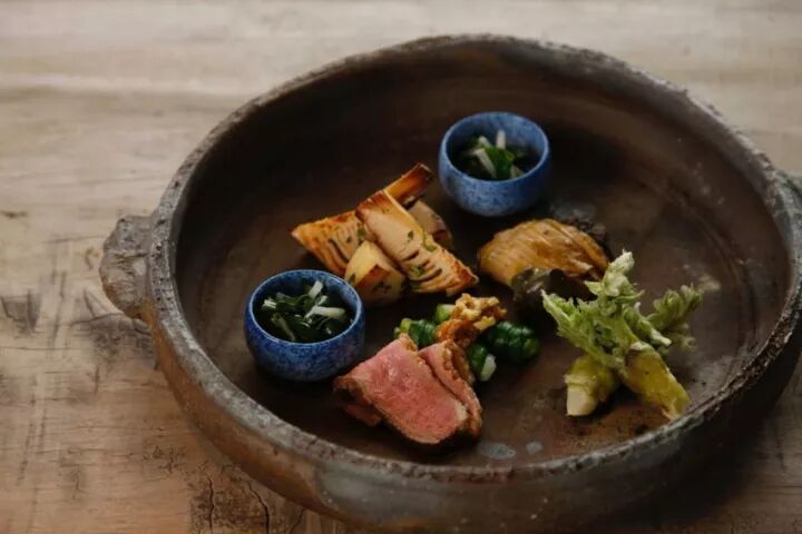 里山十帖的料理材料是由这里的早苗饗(sanaburi)提供的,这个名字来源于当地为了感谢本年帮助农耕的人而说的话。负责料理的主厨是曾经在京都米其林三星进行修业学习的吉泉,他将曾经学习到的创作料理和在斯里兰卡学习的素食料理精髓融合在一起,制作出与传统日式酒店不一样的食物。