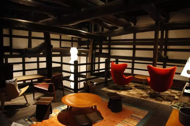 里山十帖是由具有150年历史的木构民居改建而成。主体骨干的房梁和柱子由高大坚实的丝柏架构。里山十帖实现了传统的农家风格与现代设计品融合一起的空间。屋顶高达10m,但冬天并不冷,因为装修的时候采用彻底的断热和空调设备。屋子里经常看得见花,这些自然天成的装饰品都是深山的邻居。