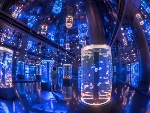 日本有哪些别致的水族馆呢?“水族馆”——约会地点经典中的经典。 喜欢鱼和海豚的人也很多。 虽说数量很多,但是在去过各种水族馆后,有没有觉得这些设施都“千篇一律”而感到厌烦了呢? 本次就向你介绍日本全国“稍稍有点不一样”的水族馆吧。 首先向您介绍的是位于山形县的“鹤岗市立加茂水族馆”,别称“梦幻水母馆”。 您可知道上图中梦幻般蓝色灯光照射下的水槽里缓缓飘动的白色生物是什么吗? 其实它们都是水母,吃惊吧! 说到水母爱好者,主要以女性为中心,人数还挺多不是嘛? 看着它们在海中飘飘悠悠会觉得整个人都放松下来了呢。 在七彩灯光照射下的水母,感觉能一直盯着看下去呢。