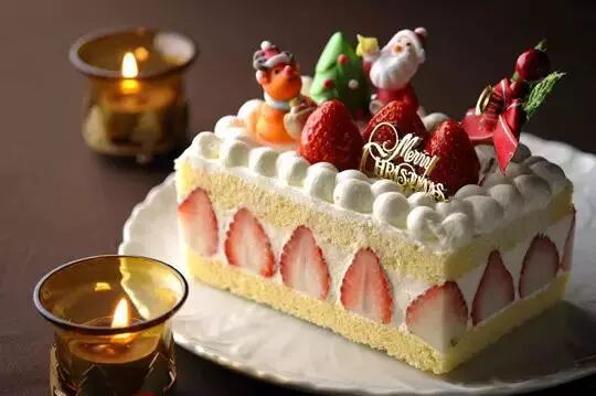 在日本有很多种圣诞蛋糕,尤其是圣诞临近的时候各个点心店仿佛展开竞争一般都摆出非常漂亮的圣诞蛋糕。一般是用奶油、草莓或者用砂糖做出圣诞老人装饰的可爱蛋糕,而且可以通过网上订购并请卖家送货上门,有时还会有送货员打扮成圣诞老人的模样送来圣诞蛋糕的服务。
