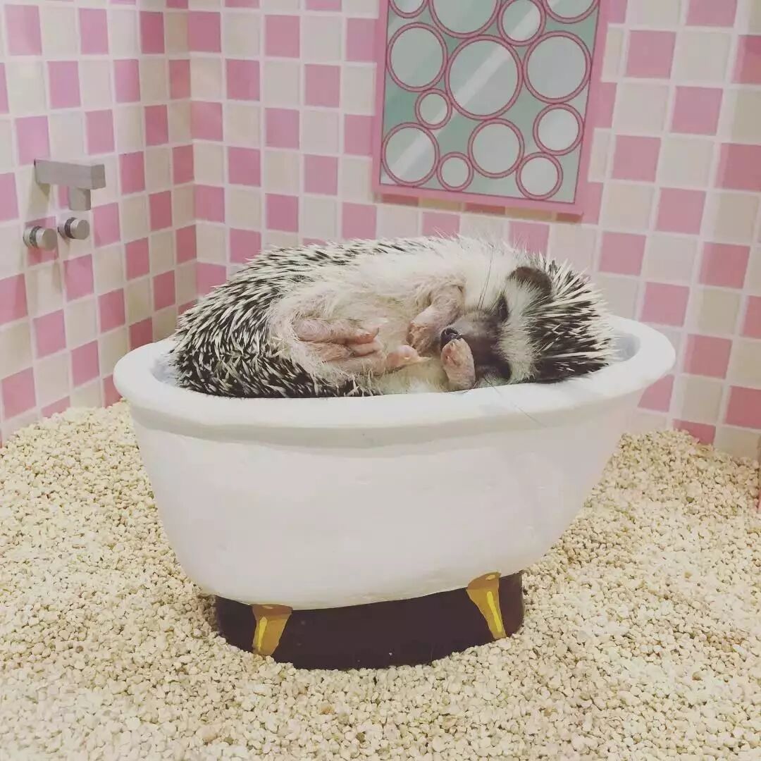 圆滚滚袖珍的身体,毛绒绒软绵绵的肚子,加上一双黝黑无辜的小眼睛,小刺猬天然带着一种可爱的反差萌! 也难怪咖啡馆要拿这类小家伙当作招揽人气的手段了。