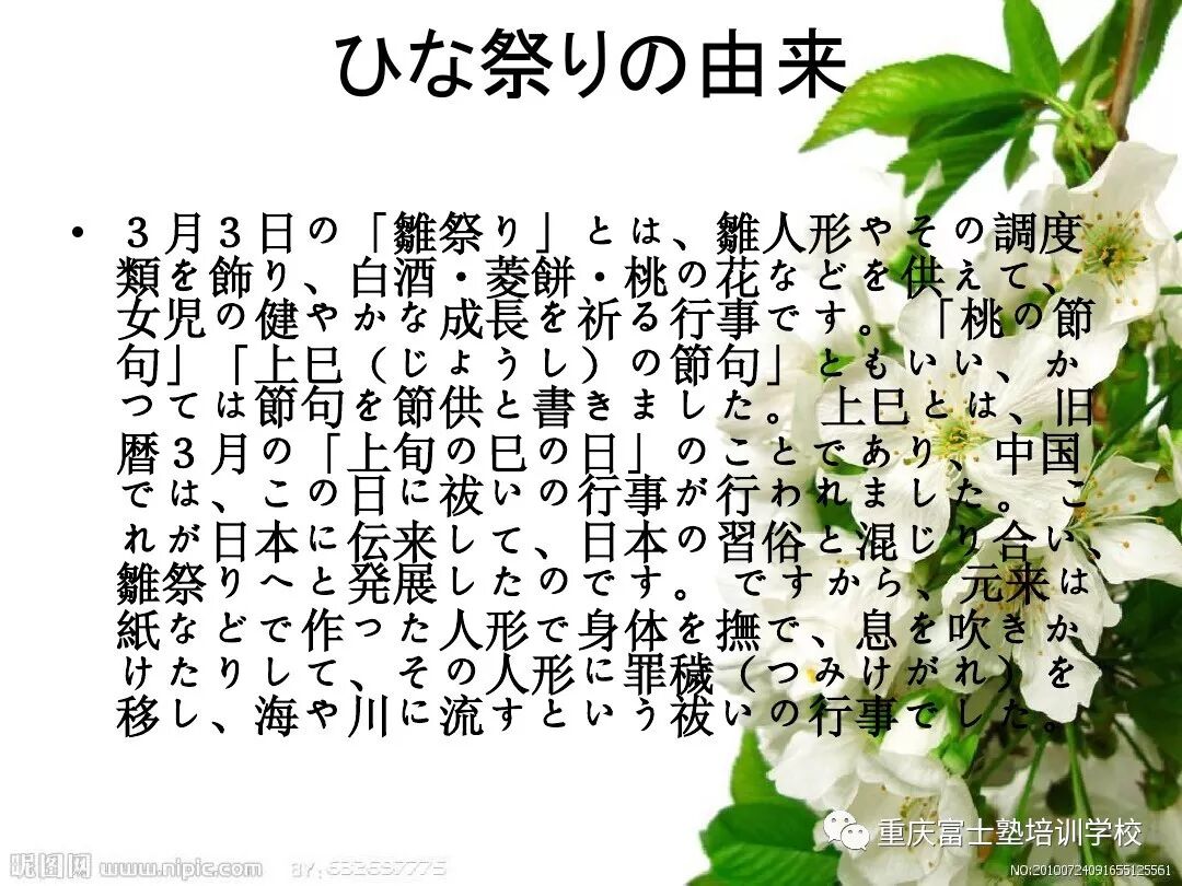 明天(3月3日)将迎来日本民间的一个重大节日——雛祭り(ひなまつり),日本女孩子的节日,亦称女儿节。家中有女儿者均于当天陈饰雛人形(ひなにんぎょう),供奉菱形粘糕、桃花,以示祝贺并祈求女儿幸福,即所谓雏祭。在这天女孩多穿着和服,邀集玩伴,在偶人坛前食糕饼、饮白色甜米酒,谈笑嬉戏。